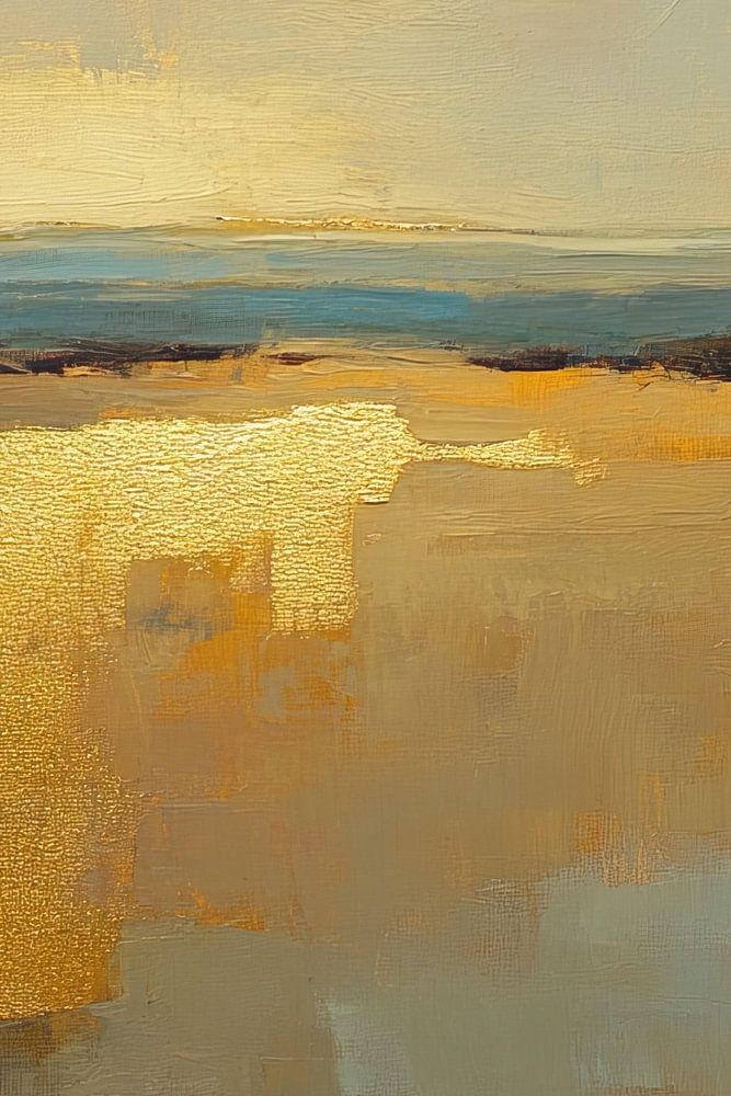 Brown and Gold in the Sky - In diesem abstrakten Gemälde sehen Sie eine sanfte Mischung aus Braun und Gold mit einem Horizont, der den Himmel widerspiegelt und ein Gefühl von Raum und Ruhe vermittelt, während die goldenen Details dem Ganzen einen Glanz verleihen.