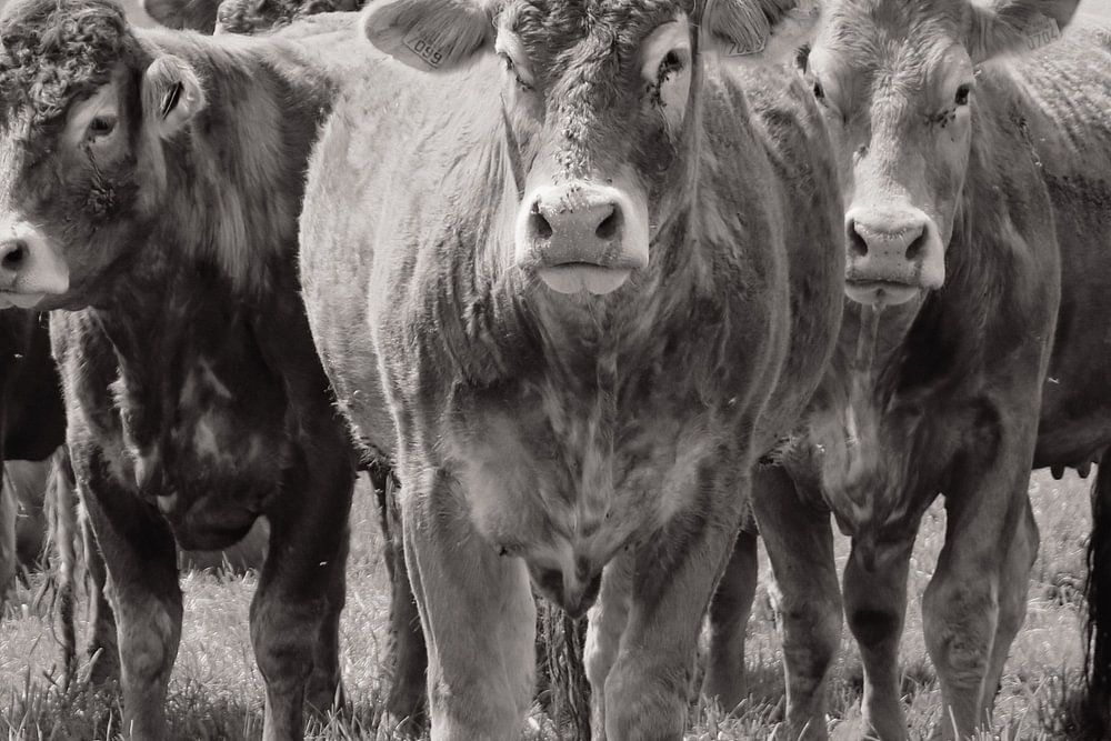 Bei einem Spaziergang in den belgischen Ardennen kamen wir an diesen braunen Limousin-Kühen vorbei, die in einer Reihe standen. Sie starrten uns so schön an, vor allem die mittlere Kuh, dass es ein tolles Bild ergab. Das Foto in Schwarz-Weiß umzuwandeln, schien die richtige Entscheidung zu sein, um ihm eine besondere Ausstrahlung zu verleihen.