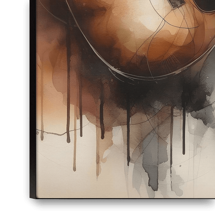 Dieses moderne abstrakte Gemälde einer Gitarre in warmen Brauntönen strahlt Stil und Eleganz aus. Die organischen Formen und subtilen Kontraste verleihen dem Instrument ein künstlerisches, fast verträumtes Aussehen. Perfekt für Innenräume, die Wärme und Kreativität ausstrahlen sollen. Das Zusammenspiel von Linien und Farben macht es zu…