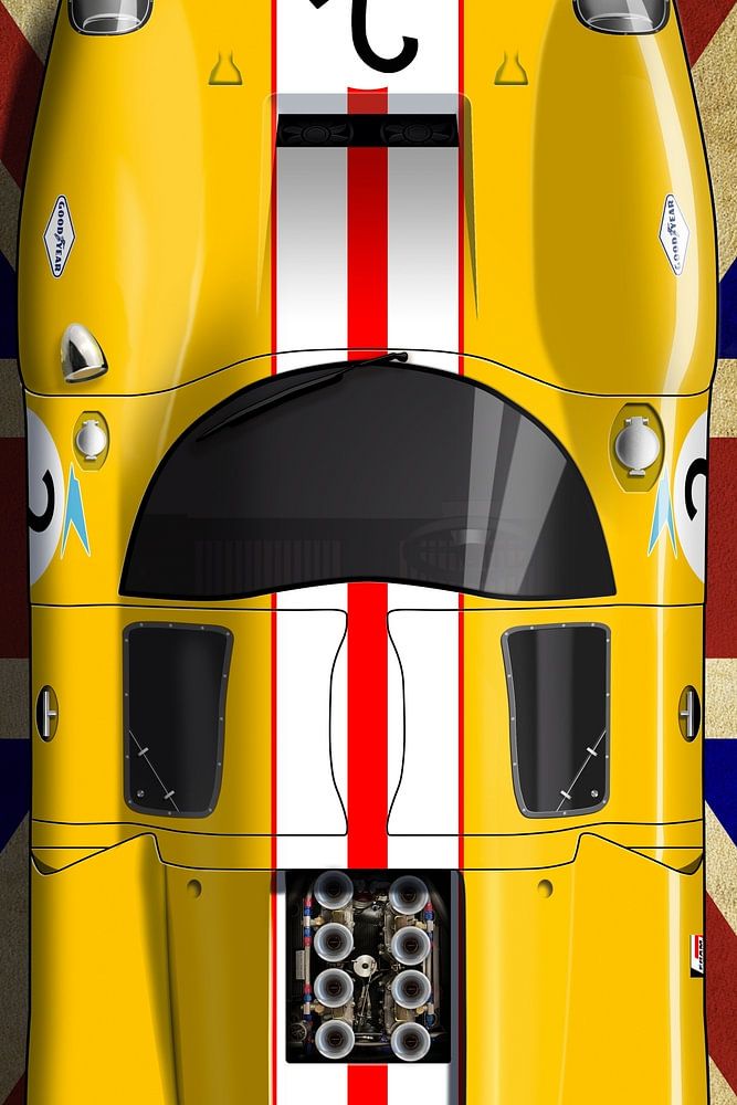 Druckgrafik aus einer Serie legendärer englischer Rennwagen.