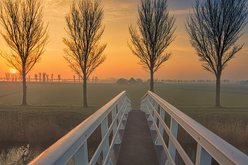 Montag, 10. März 2025 könnte ein weiterer kalter und nebliger Morgen werden. Also radelte ich nach Avenhorn, wo ich die Gelegenheit hatte, mehrere Stellen an diesem Ort zu fotografieren. Typische niederländische Polderlandschaften. Fahrradbrücken über den Ringkanal, mit einer dichten Baumreihe daneben.