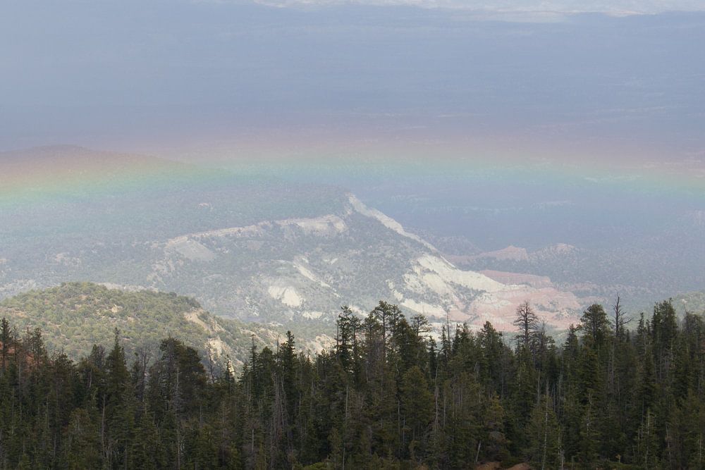 Bijzonder als je van bovenaf op de regenboog kijkt