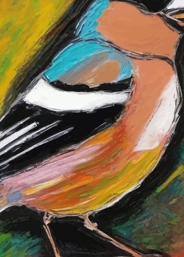 Kräftige Striche in rostigem Orange, sanften Grautönen und einem Hauch von Blau fangen die lebhafte Persönlichkeit des Buchfinken in diesem Pastellbild ein. Die strukturierten Schichten imitieren die lebhafte Präsenz des Vogels, während ein leicht abstrakter Hintergrund seine auffällige Färbung in den Mittelpunkt stellt. Dieses sowohl temperamentvolle als auch elegante Kunstwerk ist ein charmantes Statement, das mit seiner Ausgewogenheit von Farbe und Anmut sowohl Vogelfreunde als auch Kunstliebhaber anspricht.