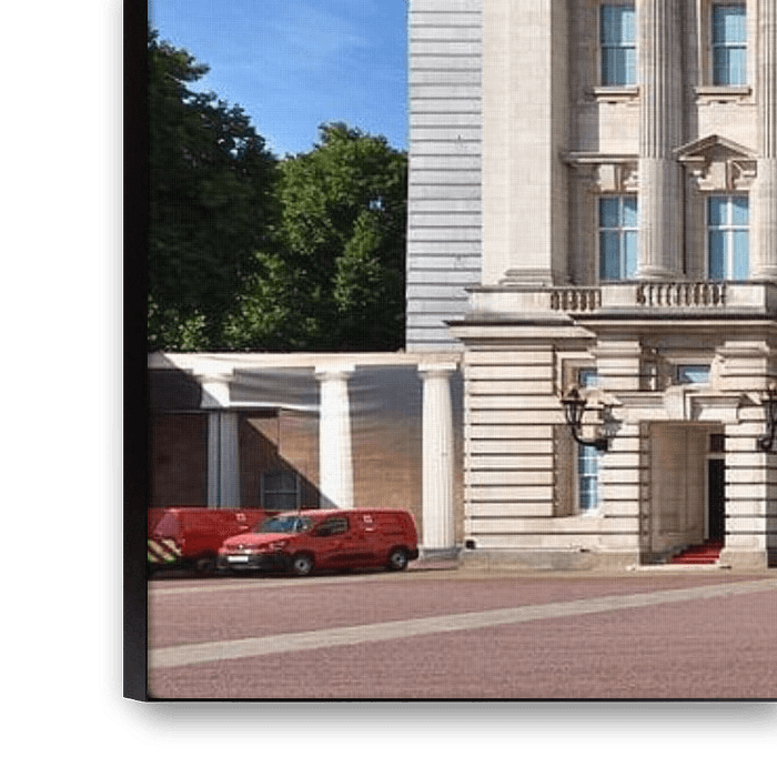 Bestelle das Foto Buckingham Palace | East Wing Fassade von Panorama Streetline als Reproduktion auf Leinwand, Alu-Dibond, als Poster, Fototapete oder Acrylglasbild.