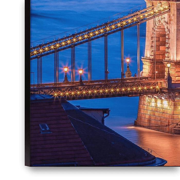 Bestelle das Foto Budapest Skyline - Das ungarische Parlamentsgebäude und die Kettenbrücke am Abend von Tux Photography als Reproduktion auf Leinwand, Alu-Dibond, als Poster, Fototapete oder Acrylglasbild.