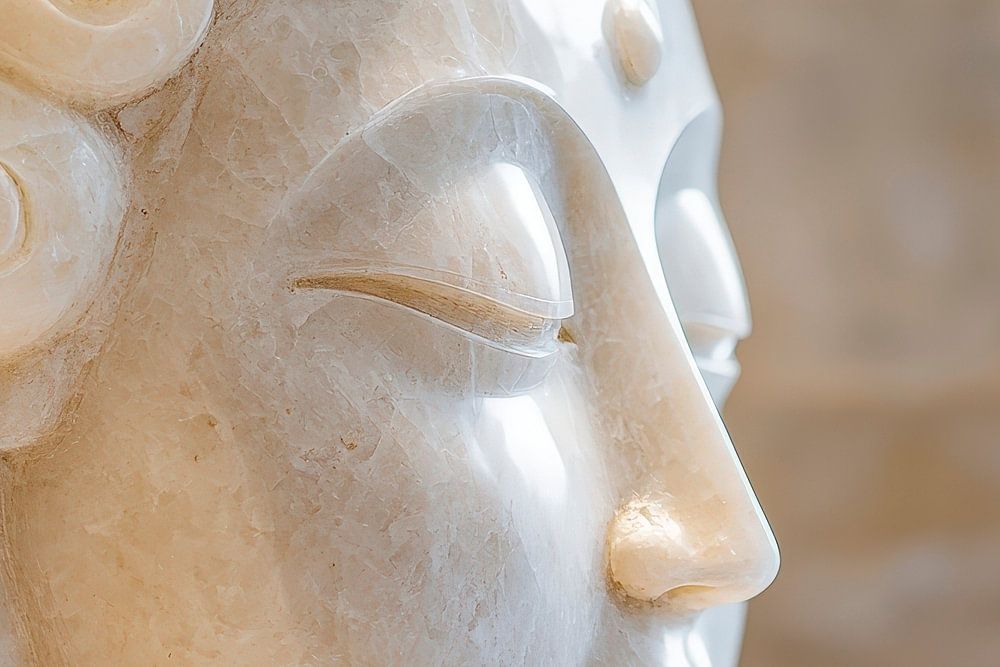 Sanfte Ruhe strahlt dieser schimmernde Buddha aus, dessen feine, detailreiche Züge Gelassenheit verkörpern. Die edlen, hellen Töne des Materials harmonieren perfekt mit jedem Raum, während der ausdrucksvolle Ausdruck ein Gefühl von Frieden und Achtsamkeit ausstrahlt. Ideal für das Wohnzimmer oder eine Meditationsstätte, um eine entspannende Atmosphäre zu schaffen.