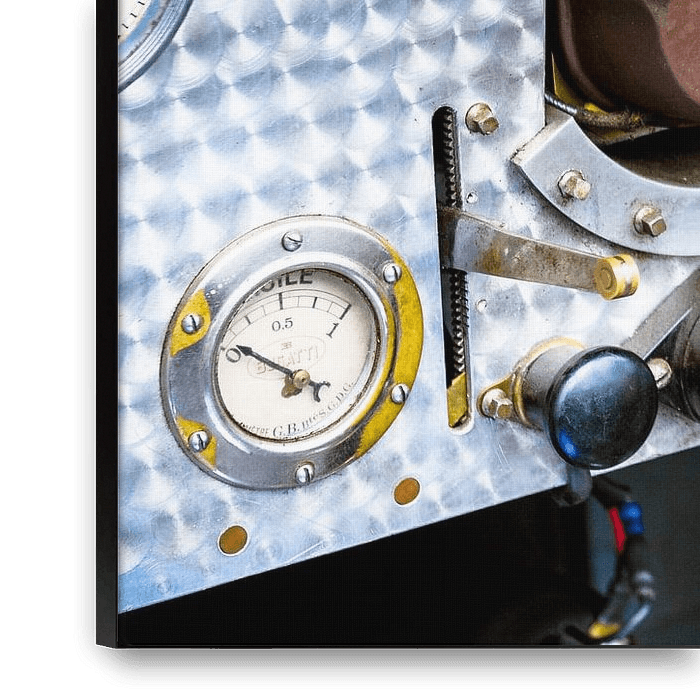 Detail im Innenraum eines Bugatti Type 35 Oldtimer-Rennwagens aus den 1920er Jahren. Der Bugatti Type 35 war zu seiner Zeit ein sehr erfolgreicher Rennwagen und wurde in verschiedenen Ausführungen produziert.