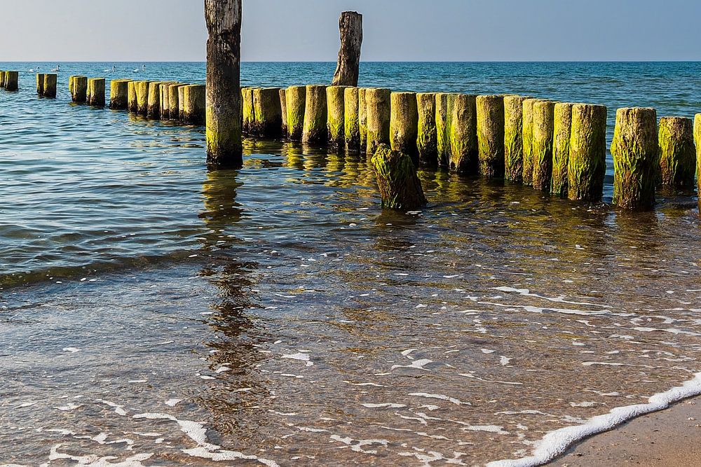 Buhnen an der Küste der Ostsee bei Graal Müritz.