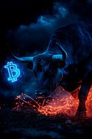 Bestelle das Foto Bullenmotivation mit Bitcoin-Logo von Poster Art Shop als Reproduktion auf Leinwand, Alu-Dibond, als Poster, Fototapete oder Acrylglasbild.