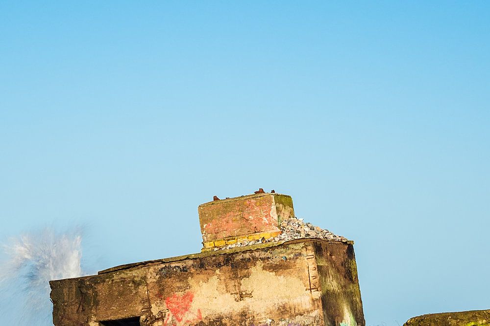 Bunker an der Küste der Ostsee an einem stürmischen Tag.