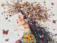 Details: Frauenbild, Naturbild, Blumenbild, Schmetterlinge, Profilbild, moderne Kunst, Blumenkrone, fröhliche Kunst, Raumdekoration,…