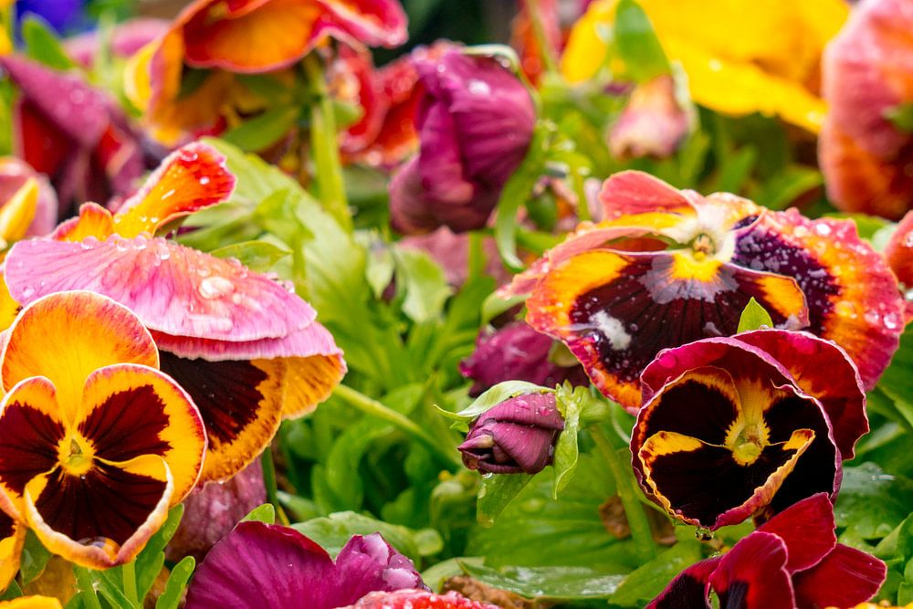 Ein Makro von Veilchen mit verschiedenen Farben in Friesland, während der elf Stadtrundgänge.