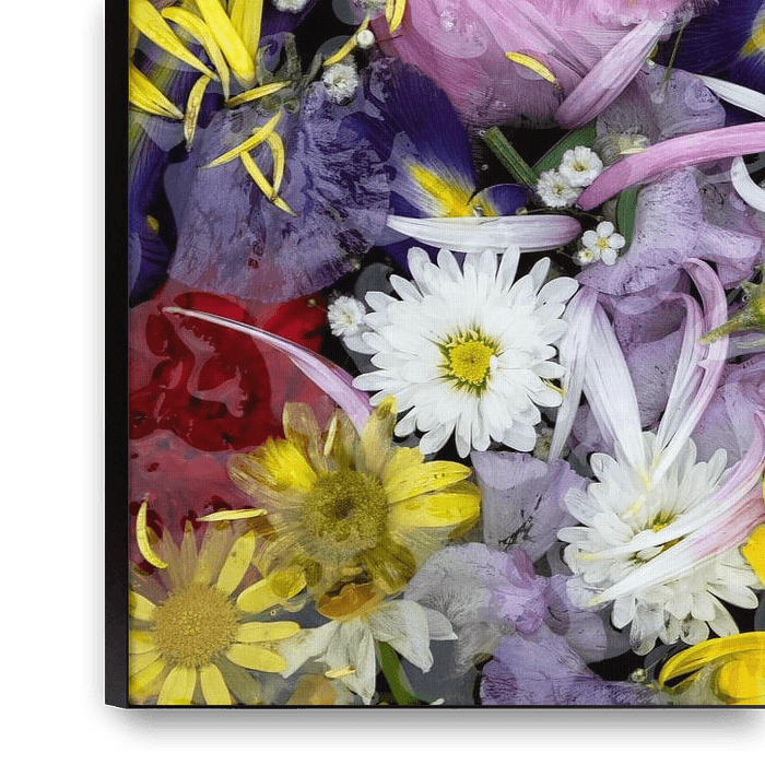 Bestelle dieses Blumen-Wandbild Bunte Blumenszene mit Wasser von Stella Ammerlaan als Reproduktion auf Leinwand, Alu-Dibond, als Poster, Fototapete oder Acrylglasbild.