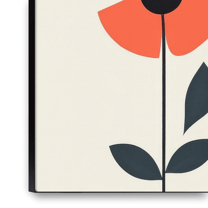 In einem fröhlichen Farbenmeer erblühen stilisierte Blumen in leuchtendem Orange und sanftem Gelb. Ihre markanten schwarzen Herzen ziehen alle Blicke an, während zarte Blätter einen harmonischen Rahmen bilden. Über diesem bunten Blumenfeld schwebt ein kleiner Schmetterling, der das Bild mit einer Note von Leichtigkeit und Verspieltheit…