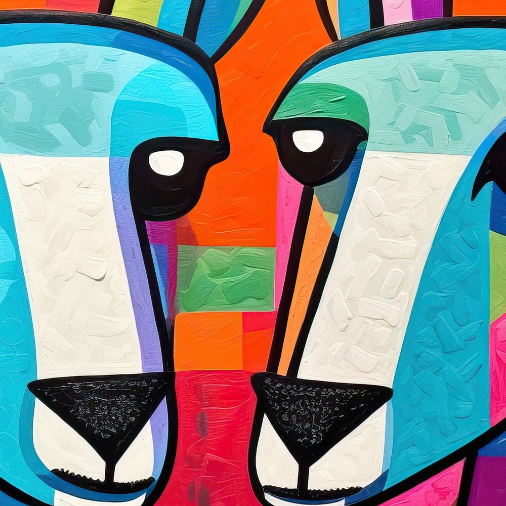 Details: Staffelei, abstrakt, bunt, Tier, Kunst, Portrait, fröhlich, modern, geometrisch, Pop Art