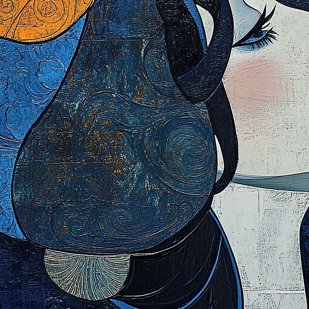 Details: Frauenbild, abstrakte Malerei, moderne Kunst, Frau, Profil, blau, orange,…