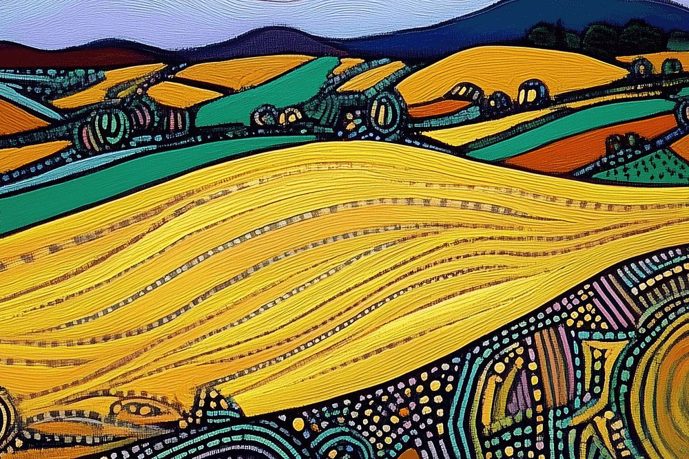 Deze landschappen ademen de geest van Vincent van Gogh. Denk aan het ruige, zonovergoten platteland, velden van koren dat wiegt in de wind, de gloeiende oranje schemering die de horizon omarmt, en hemels die dansen in een wisselende symfonie van blauw en violet. Elk van deze scènes is niet zomaar een weergave van de natuur, maar een diep emotionele ervaring. De AI heeft de essentie van Van Gogh's passie voor het landschap weten te vangen. De penseelstreken van het pointillisme - korte, gebroken lijnen en stippen - creëren een pulserende levendigheid in mijn werk, alsof de aarde zelf ademhaalt en beweegt.