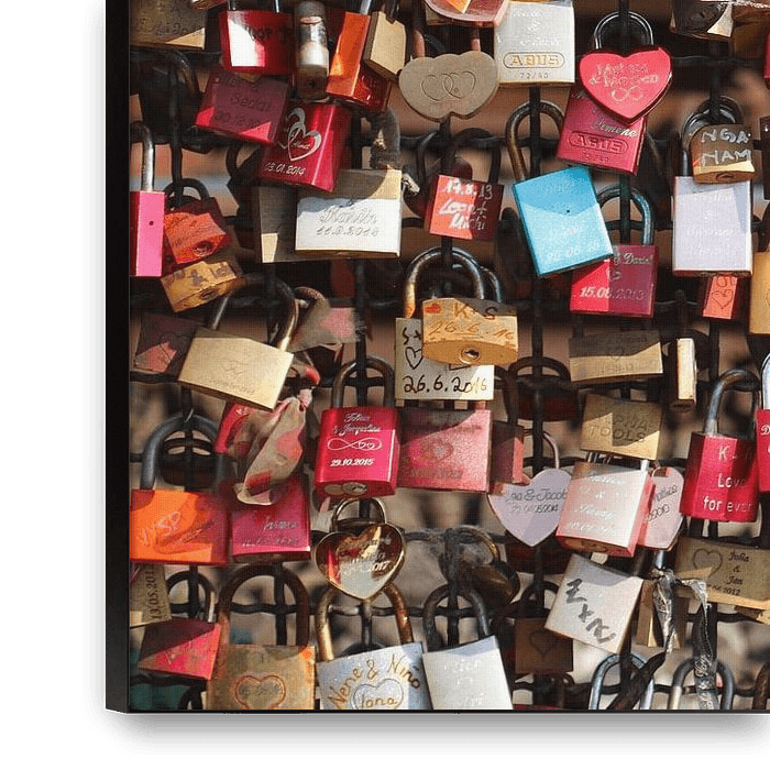 Bestelle das Foto Bunte Liebesschlösser von Torsten Krüger als Reproduktion auf Leinwand, Alu-Dibond, als Poster, Fototapete oder Acrylglasbild.