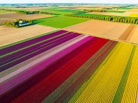 Feld mit verschiedenfarbigen Tulpen im Frühling in Flevoland, Niederlande. Der Noordoostpolder ist ein Polder in der ehemaligen Zuiderzee, der ursprünglich angelegt wurde, um mehr Land für die Landwirtschaft zu gewinnen.