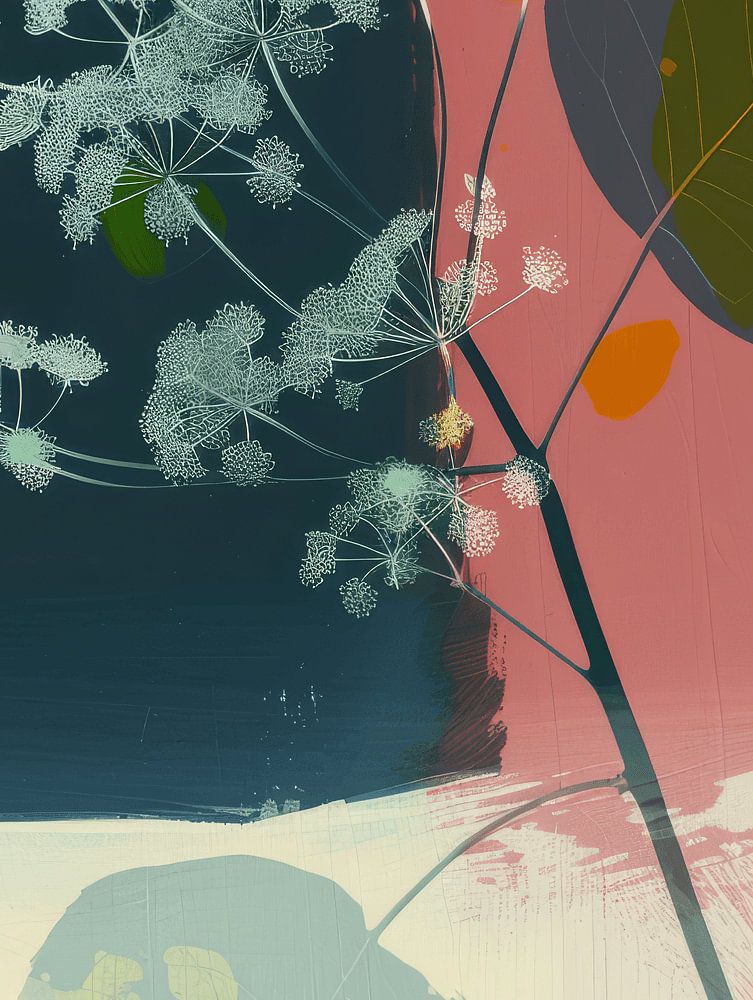 Buntes botanisches Abstrakt. Ein besonderer Blickfang in Neonfarben. Wählen Sie das Format und das Material selbst und passen Sie dieses Werk an Ihr Interieur an.