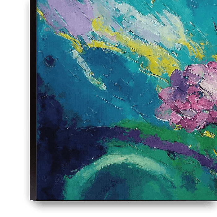 Ihre gewählte Kunst auf Leinwand, gespannt in einem Aluminiumrahmen. Schnell und einfach austauschbar für eine frische Ausstrahlung und ganz nach Ihren Wünschen.