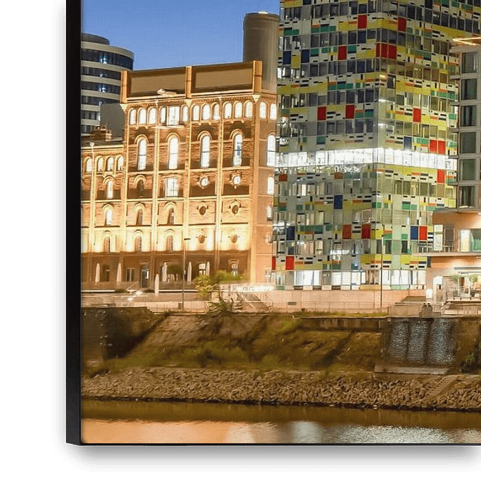 Ein richtig farbenfrohes HDR Bild aus dem Düsseldorfer Medienhafen - der Kontrast in der blauen Stunde ist einfach besonders toll anzusehen.