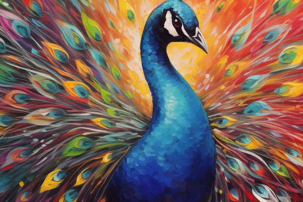 Bunter Pfau der modernen Kunst auf Leinwand gemalt, Kunstdesign