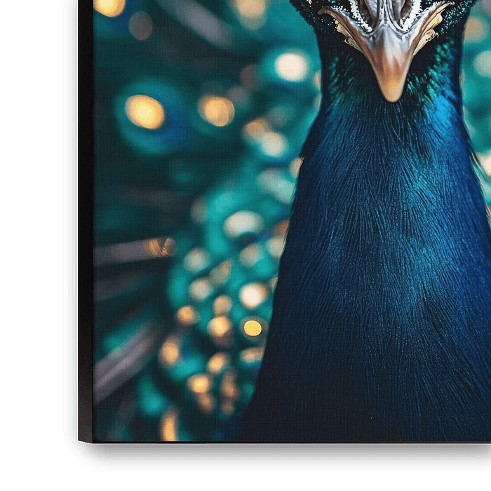 Dieses wunderschöne Bild eines Pfaus zieht mit seinem intensiven Blick und seinen leuchtenden Farben sofort die Aufmerksamkeit auf sich. Das detaillierte Design hebt die leuchtenden Blau- und Grüntöne hervor, die durch die subtilen Goldakzente im Hintergrund unterstrichen werden. Der Pfau strahlt Eleganz und Stärke aus und vermittelt ein Gefühl von Luxus und Raffinesse. Dieses Kunstwerk ist ideal für alle, die ihrem Interieur einen Hauch von exotischer Schönheit verleihen wollen, perfekt für moderne Wohnräume oder stilvolle Büros. Lassen Sie dieses Meisterwerk Ihren Raum erhellen und bewundern Sie jeden Tag die faszinierenden Details.