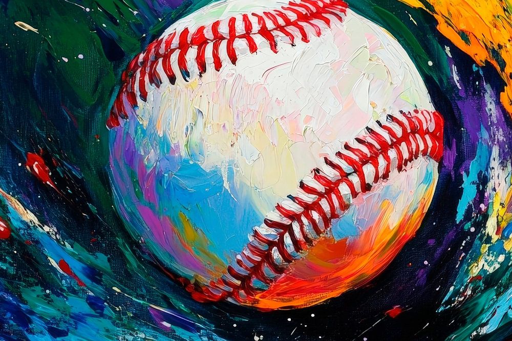 Ein lebendiger Wirbel aus Farben zieht den Betrachter in seinen Bann, während ein strahlender Baseball ins Zentrum dieser dynamischen Komposition tritt. Die kräftigen Pinselstriche und die explosive Farbpalette vermitteln ein Gefühl von Bewegung und Energie. Perfekt geeignet für ein sportliches Wohnzimmer, das den spielerischen Geist einfängt und Begeisterung für das Spiel verbreitet.