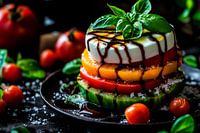 Buntes Gemüseturm mit Basilikumketchup von Poster Art Shop