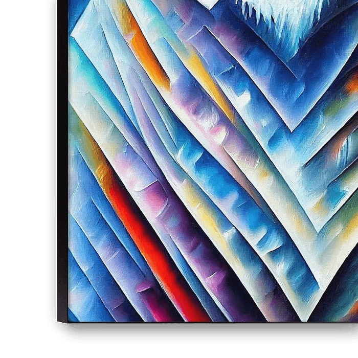 Ein farbenfrohes digitales Gemälde eines Eisbären. Das Werk hat einen abstrakten, impressionistischen Stil mit leuchtenden Farben und hohem Kontrast. Dieses Werk verleiht jedem Interieur ein fröhliches und freundliches Aussehen!