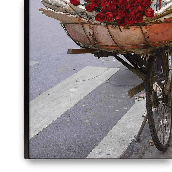 Bestelle dieses Blumen-Wandbild Buntes Stadtbild: Hanoi's Blumenfahrrad von Daisy Renders als Reproduktion auf Leinwand, Alu-Dibond, als Poster, Fototapete oder Acrylglasbild.