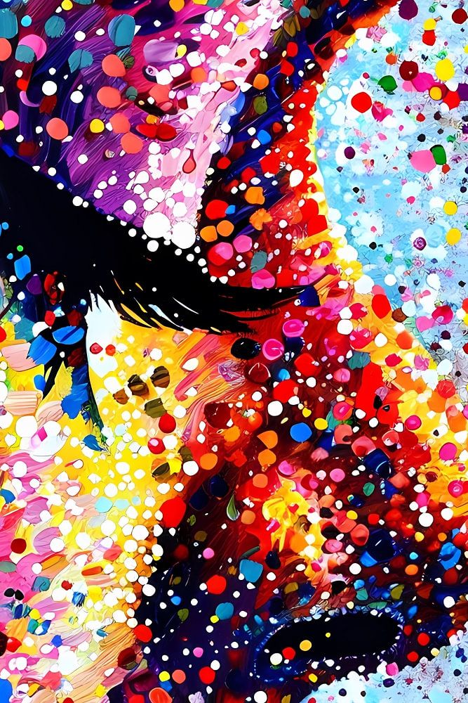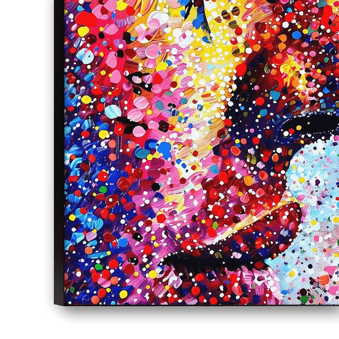 Dieses farbenfrohe und lebendige abstrakte Porträt bringt eine Explosion von Farbe und Energie in jeden Raum. Das vom Stil des abstrakten Expressionismus inspirierte Design zeigt ein Gesicht, das aus Tausenden von winzigen Punkten und Pinselstrichen in einer breiten Palette von Farben besteht. Dieses Kunstwerk ist ein echter Blickfang und bringt ein dynamisches und modernes Element in Ihre Einrichtung. Dieses Gemälde eignet sich perfekt für moderne Wohnräume, Büros oder kreative Umgebungen und strahlt Vitalität und Kreativität aus. Es ist ein ideales Kunstwerk für Liebhaber moderner Kunst, die ihren Raum mit einem einzigartigen und fesselnden Werk beleben möchten.