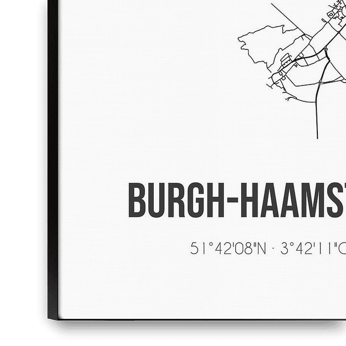Bestelle dieses abstrakte Wandbild Burgh-Haamstede (Zeeland) | Karte | Schwarz-Weiß von Ortsdrucke als Reproduktion auf Leinwand, Alu-Dibond, als Poster, Fototapete oder Acrylglasbild.