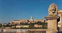 Blick von der Kettenbrücke über die Donau zum Burgpalast auf dem Burgberg im Burgviertel. Es ist das größte Gebäude Ungarns und das wohl bekannteste Gebäude der Hauptstadt Budapest, Ungarn, Europa