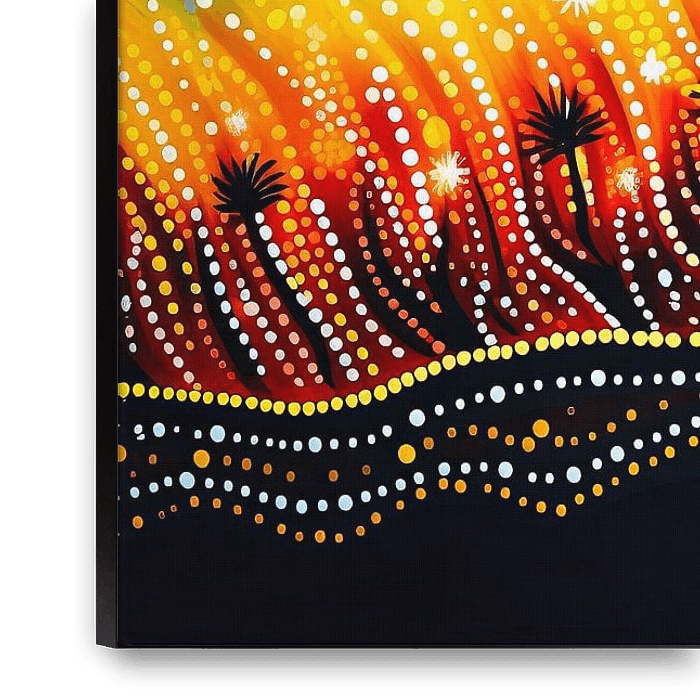 Die von den Aborigines inspirierte pointillistische Serie ist ein tiefes Zeugnis für den Geist der natürlichen Landschaft und ein Teppich künstlerischen Ausdrucks. Diese Kollektion lädt den Betrachter zu einer eindringlichen Pilgerreise durch Leinwände ein, die von uralten Erzählungen und dem rhythmischen Herzschlag der Erde pulsieren.…