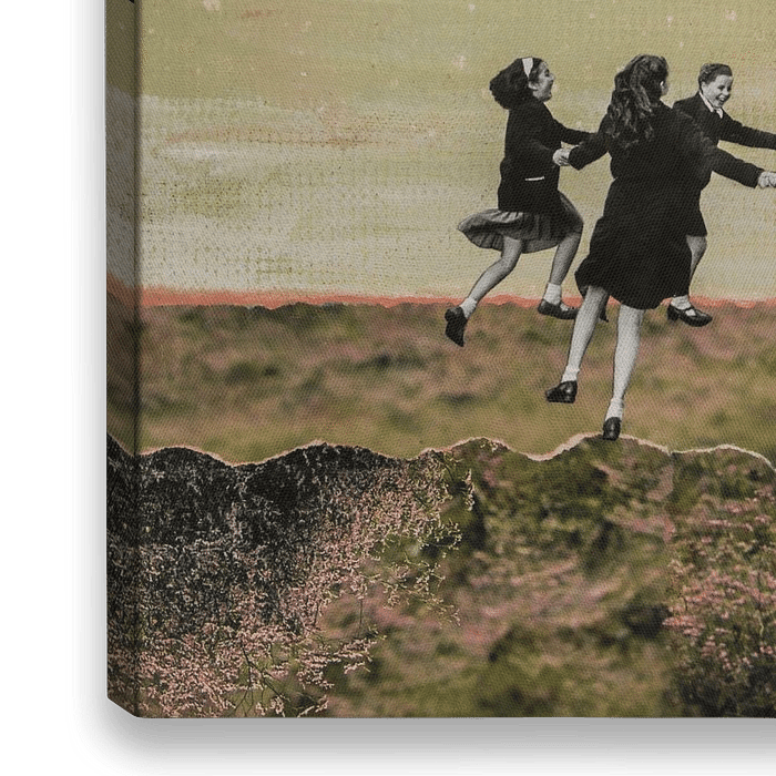 A group of girls is dancing around a winter tree, longing for the spring season. All of my artworks are inspired by weathered walls with posters, peeling paint and all kinds of things in dilapidation.