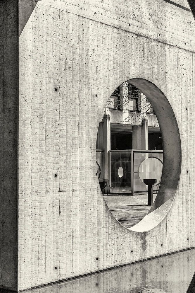 Das alte CBS-Gebäude in Heerlen ist ein gutes Beispiel für die kreative Verwendung von Beton. Das Gebäude steht auf Betonpfeilern, die runde Löcher mit überraschenden Ausblicken aufweisen.