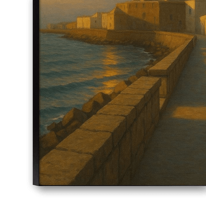 Beeinflusst von der ruhigen Lyrik Edward Hoppers, destilliert dieses Werk den Geist Südspaniens in Farbe und Ruhe. Das Licht fühlt sich unendlich an, in der Luft liegt der Hauch von Salz und Stein. Die Schatten fallen sanft an der Wand entlang und lenken den Blick auf den Horizont - eine Einladung, zu atmen, zu wandern und den langsamen Rhythmus des Abends zu spüren.