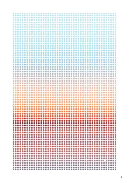 Dieses Bild zeigt ein Raster aus kleinen, gleichmäßig verteilten Kreisen, die in einem Halbtonmuster angeordnet sind. Die Farben gehen im oberen Bereich fließend von Hellblau in warme Töne über, darunter Orange, Rot und dunkles Kastanienbraun, und verlaufen nach unten. Der Gradienteneffekt verleiht dem Bild ein Gefühl von Tiefe und…