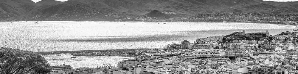 Die Stadt Cannes in Südfrankreich in schwarzweiß.