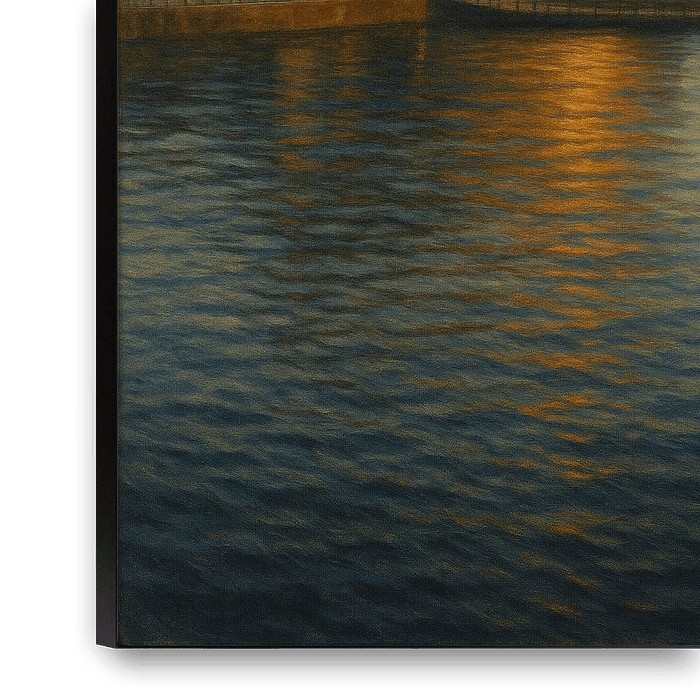Cardiff Bay at Twilight verwandelt das Hafenviertel der walisischen Hauptstadt in eine filmische Studie von Licht und Emotionen. In der Bucht, die sich im Schein der Straßenlaternen sanft kräuselt, spiegeln sich die goldenen Reste des Sonnenuntergangs, während sich die moderne Skyline im Schatten auflöst. Die von Edward Hoppers heiterem…