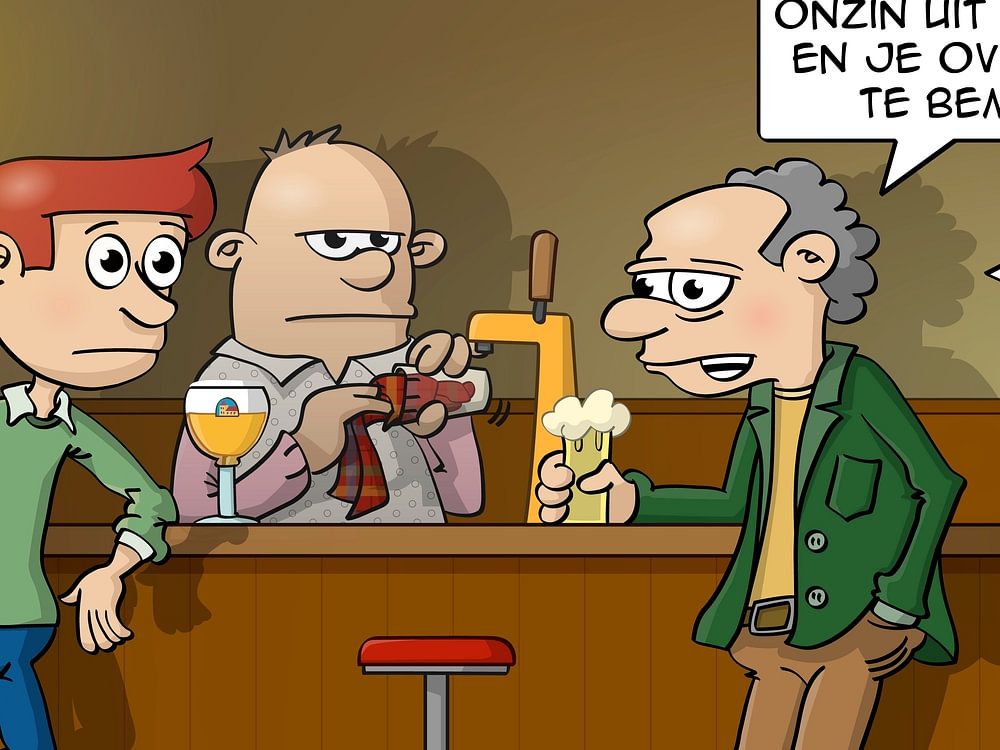 Dieser Cartoon richtet sich an den niederländischsprachigen Sprachraum. Dies ist ein spezifischer niederländischer Ausdruck, was bedeutet, dass der Text im Bild nicht übersetzt werden kann. Der Cartoon ist daher nur auf Niederländisch verfügbar.