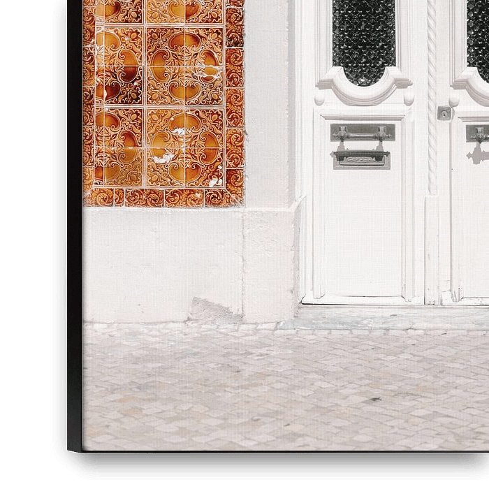 Diese weiße Tür in Cascais - einer Küstenstadt in der Nähe von Lissabon - erregte sofort meine Aufmerksamkeit. Zusammen mit den berühmten mediterranen Kacheln bildet es ein fotogenes Ganzes. Perfekt als Druck für Liebhaber von Portugal.