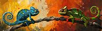 Details: Chamäleon, Duell, bunt, abstrakt, modern, Natur, Tier, künstlerisch, gelb, rot, grün, blau