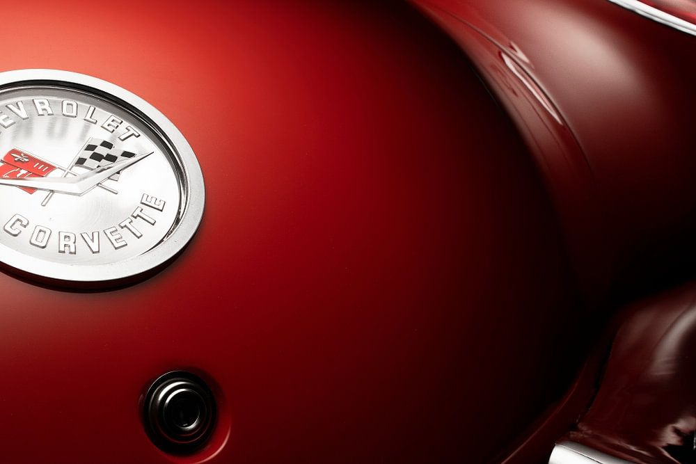 Kurven, Chrom an den richtigen Stellen. Was für eine Schönheit ist die klassische Chevrolet Corvette von 1958, ein Oldtimer mit einem verrückten Design und einem ikonischen Image. Bei mir hing dieses Auto als Poster an der Wand neben dem Ferrari F40 und dem Jaguar E-Type. Dieses Bild wurde mit der FDL-Technik (Focused Diffused Lighting) aufgenommen.