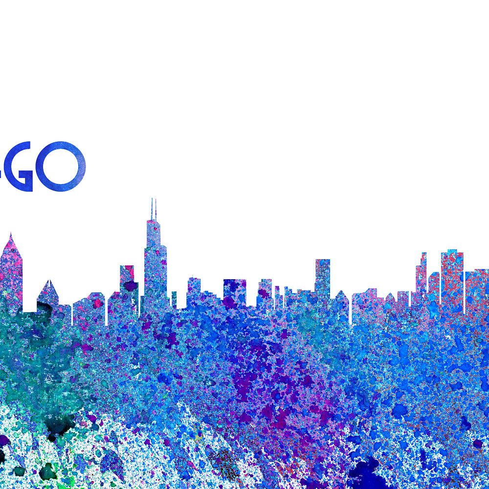 Bestelle das digitale Kunst Bild Chicago Michigan Skyline Silhouette Impressionistisch von Markus Bleichner als Reproduktion auf Leinwand, Alu-Dibond, als Poster, Fototapete oder Acrylglasbild.