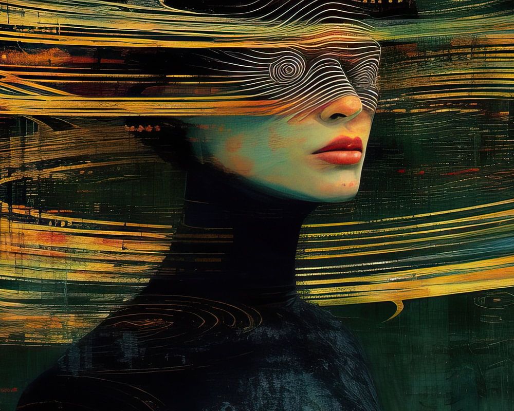Ciphered Silhouette - modernes Frauenporträt, abstrakte Formen, buntes Stillleben