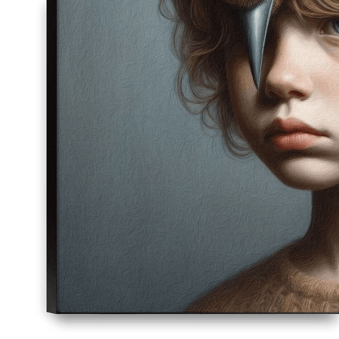 Das Porträt eines Jungen, beschützt und getröstet von einem liebevollen Vogel.