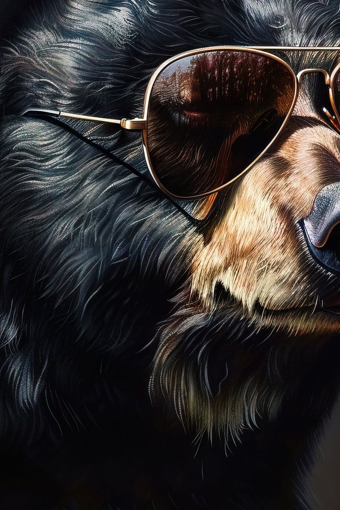 Details: Bär, Sonnenbrille, Portrait, schwarz, braun, Spiegelung, Tier, Kunst, modern, Humor
